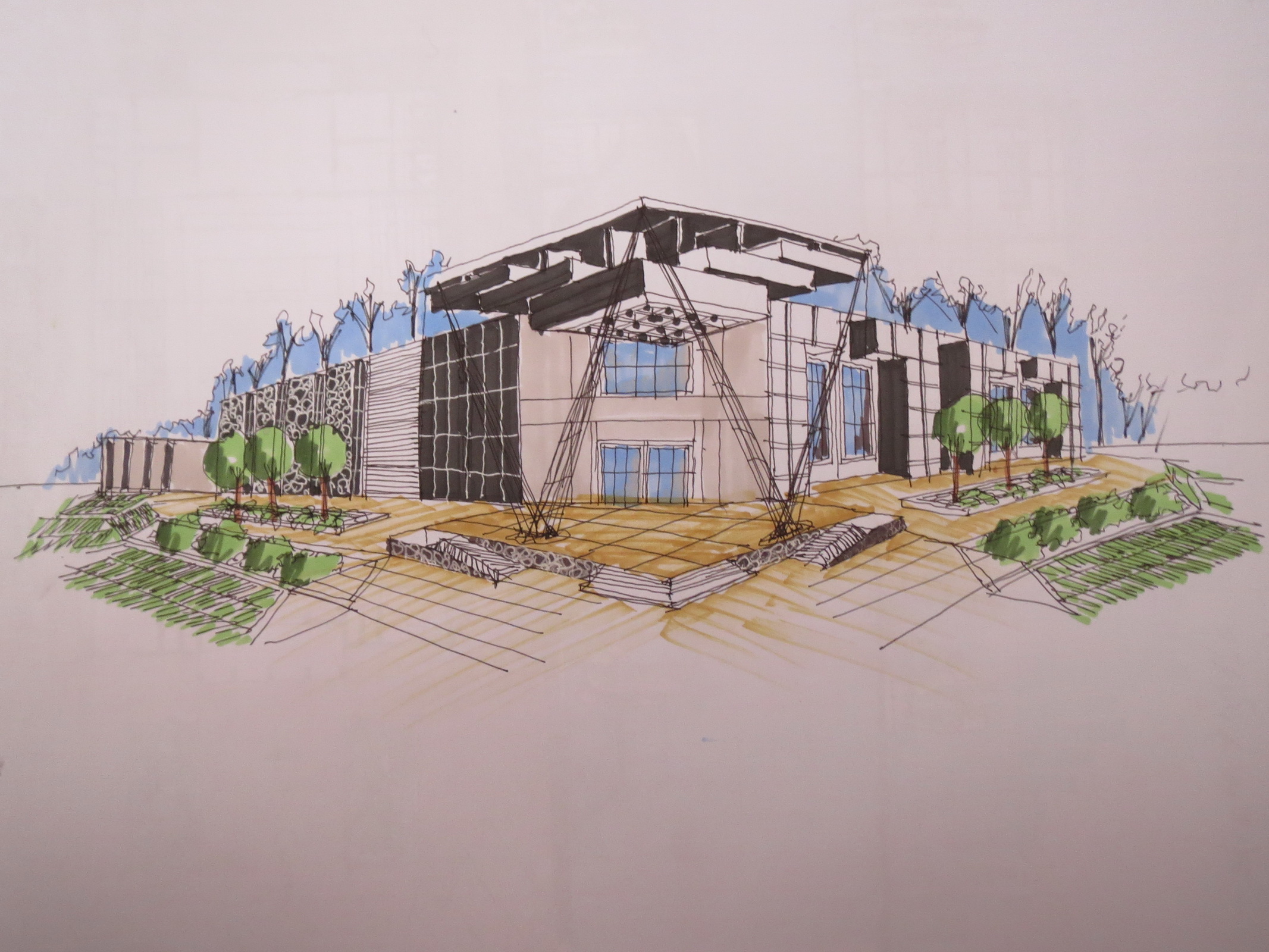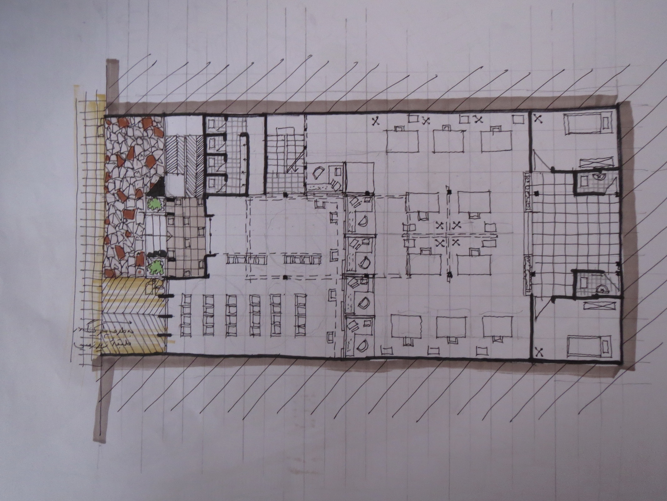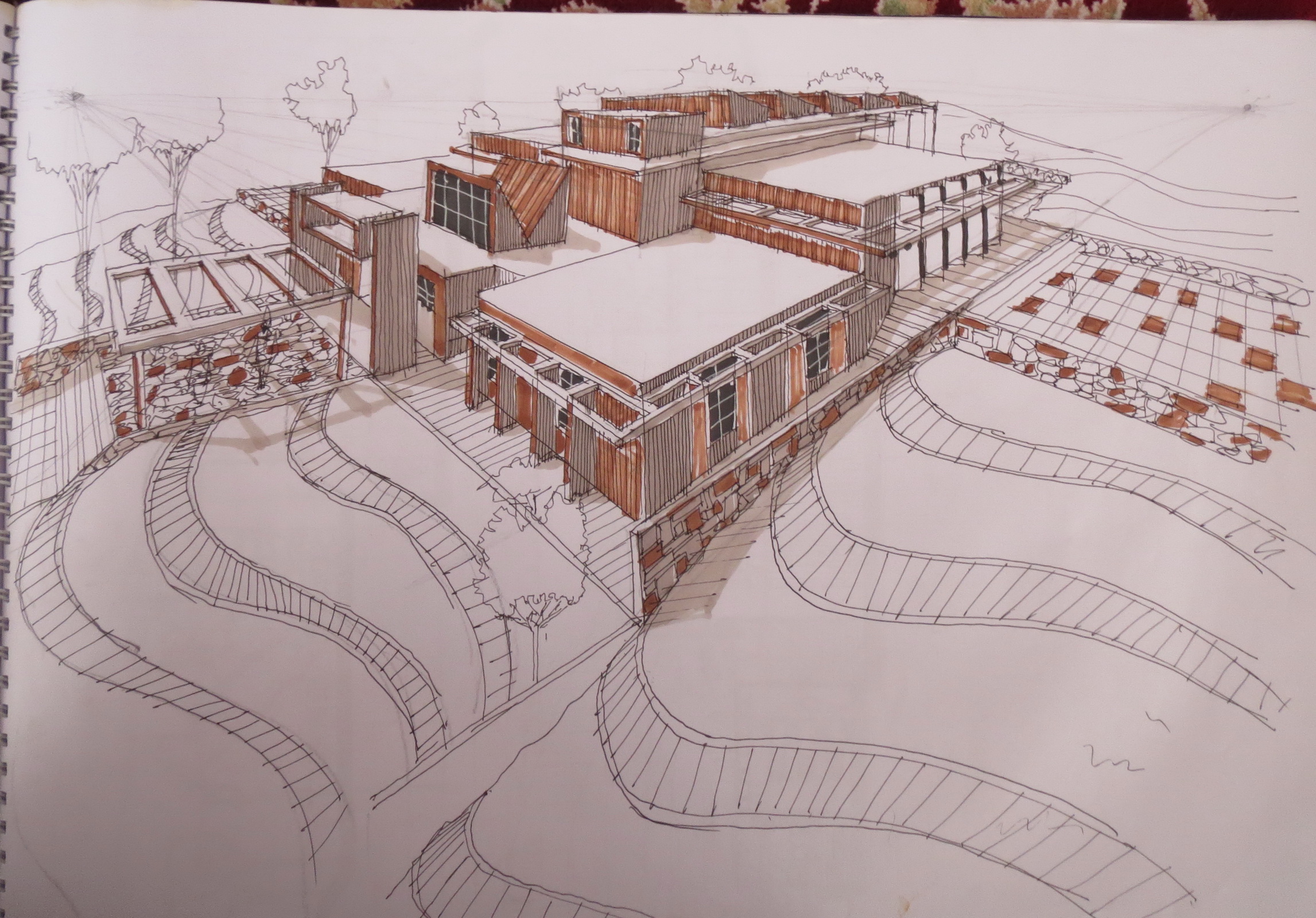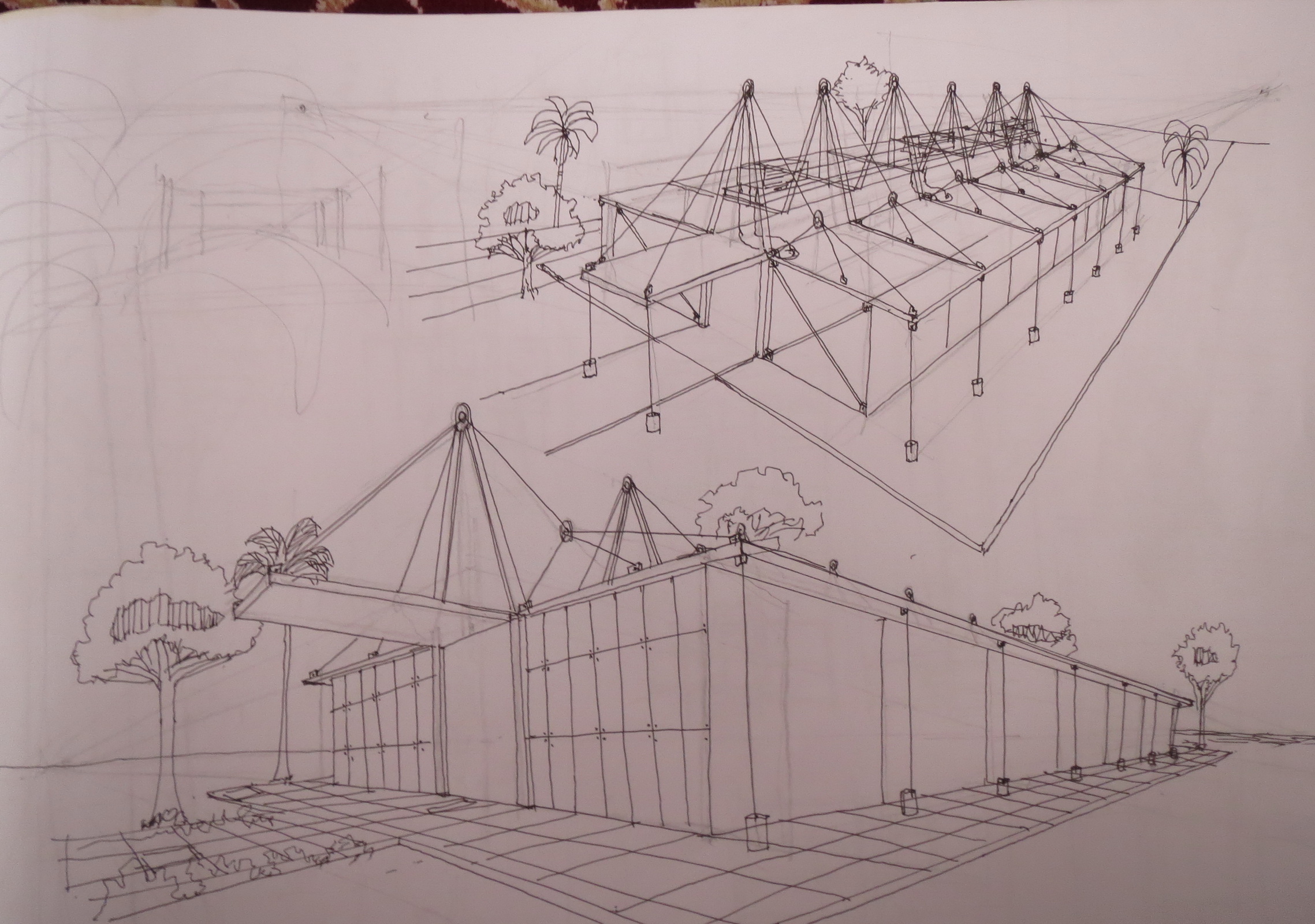 به نظرم کلیت کارات خوبه .. ولی مثلا اولین نکته ای که حس میشه اینه که فاصله گریزا نزدیکه به هم .. کار جمع شده وسط کاغذ .. یکم هم بیشتر به کف کار و اتصال بنا با زمین بپرداز ... مثلا با یه سری کفسازی. جلوی ورودی ..کلا منظورم اینه که یه کارایی بکنی که حجمت و راندوت خودشو پخش کنه تو شیت نه اینکه همه چی و همه رنگا جمع شه وسط بقیه شیت سفید بمونه ...این مطمئنا خیلی رو کیفیت کار تو نگاه اول تاثیر میذار ..