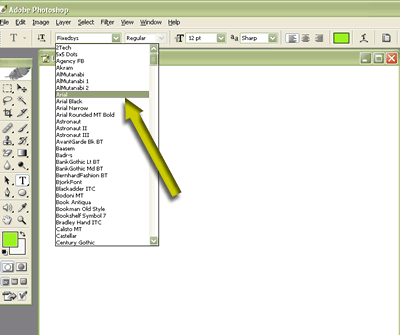 نمایشگر ماوس را بر روی تصویر جابجا کنید و برای تعیین نقطه شروع تایپ در تصویر و در محل مورد نظر کلیک کنید.انتخاب نوع فونت