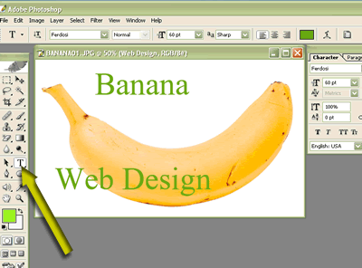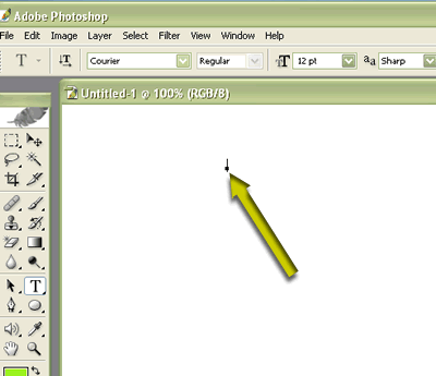 در حالیکه تصویر مورد نظرتان باز است، روی ابزار Type موجود در جعبه ابزار کلیک کنید.تعیین نقطه شروع متن
