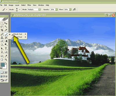 یک فایل را در فتوشاپ باز کنید و سپس ابزار Brush را از جعبه ابزار فتوشاپ انتخاب نمائید.انتخاب یک حالت یکدست کننده