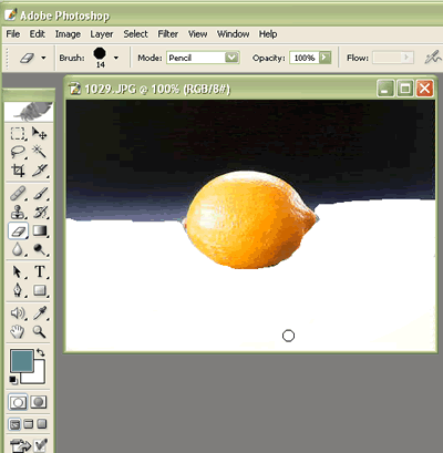 پاک کردن یک محیط درست در نقطه مقابل نقاشی یک تصویر است که مقادیر پیکسلها را در تصویر حذف میکند. در نوار Options در واقع ۳ ابزار پاک کننده برای انتخاب وجود دارد: Brush ، Block و Pencil . پاک کننده Brush به شما امکان میدهد تا پیکسلهای مورد نظرتان را با یک قلم از پیش تعیین شده حذف کنید، پاک کن Block یک افکت هندسی است که برای پاک کردن لبههای سخت مناسب تر است و پاک کن Pencil که در هر کلیک امکان حذف یک پیکسل را به شما میدهد.